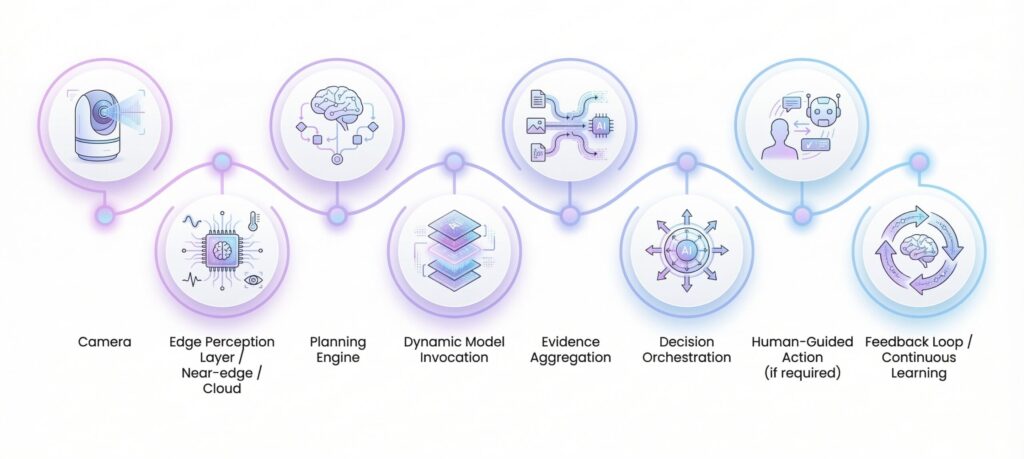 Transforms video streams into goal-aligned actions with evidence and learning loops