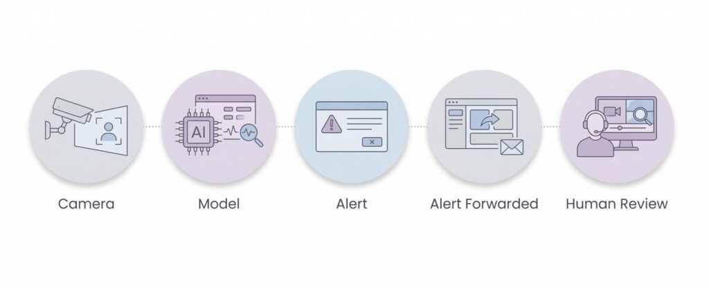 VisionCore is implemented in a hybrid architecture and can be integrated to existing camera networks.