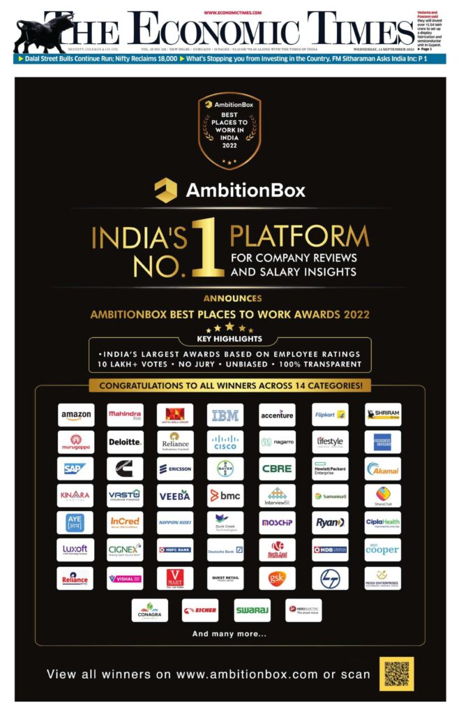 Acknowledged among the top 150 Champions in India for 2022, featured in a prestigious ranking compiled by a world-renowned financial publication in collaboration with a top data analytics firm.