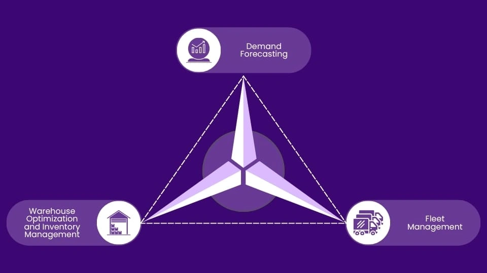 - Fleet Management: AIoT integration in fleet management enhances efficiency, and boosts customer satisfaction by enabling real-time vehicle tracking through GPS sensors. Logistics managers gain transparency to adjust routes and schedules based on real-time data, while AI algorithms optimize routes by analyzing traffic, weather, and delivery history, minimizing delays and cutting fuel costs. Predictive maintenance ensures vehicle reliability, and sensors provide insights into fuel usage and driving habits, allowing businesses to promote efficient practices. These advancements streamline operations, improve safety and compliance, and create a reliable supply chain.