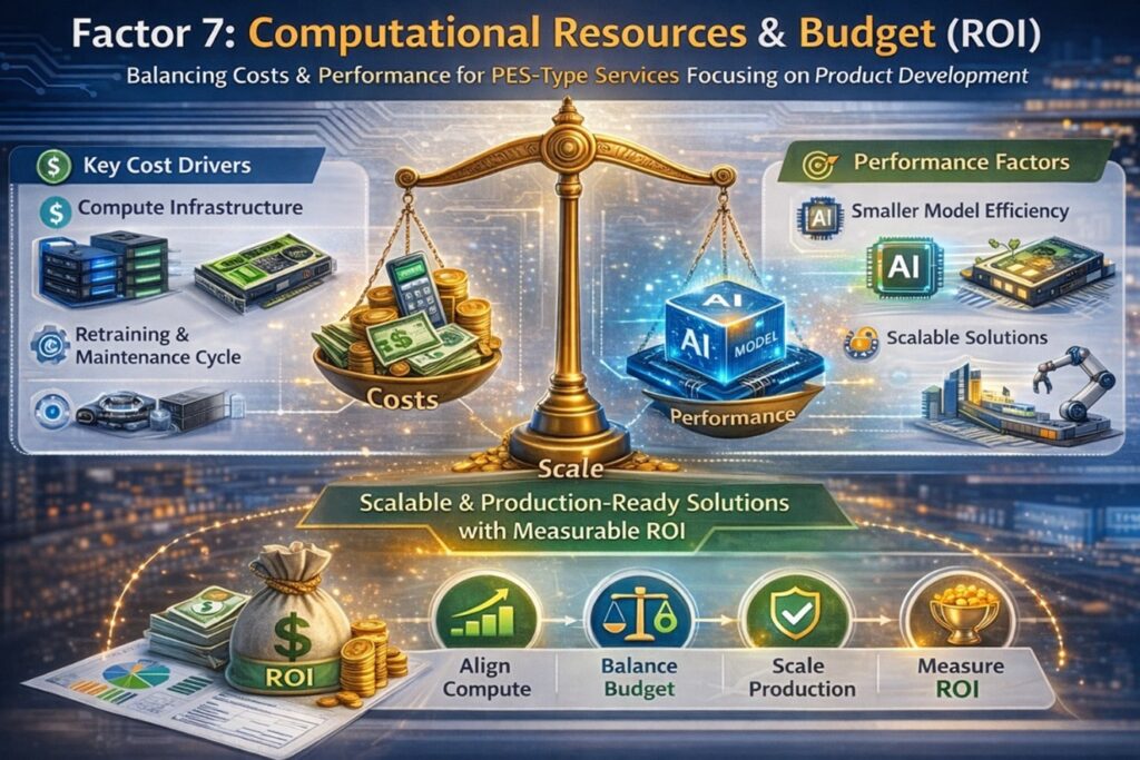 Once hardware has been considered, the second factor is assessing computing resources and total project budget estimates with respect to fine-tuning. For PES-type services focused on Product Development, developing AI will need to weigh trade-offs between costs and performance. Large models typically need higher amounts of GPU resources, longer training cycles and higher operating costs than smaller models.
