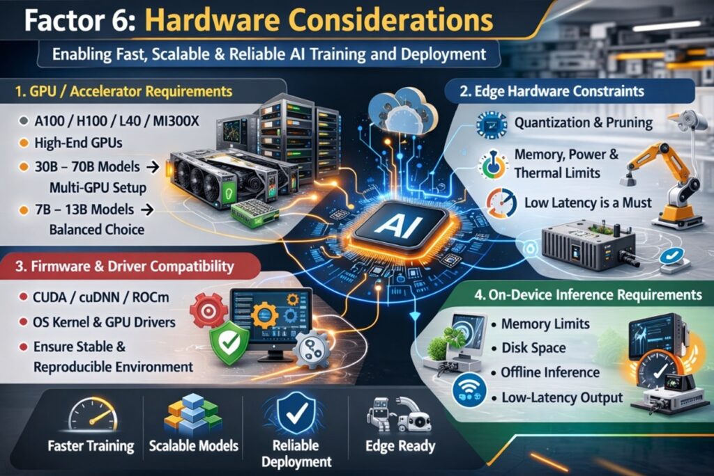 Although fine-tuning can be driven by data/modelling requirements, there are also hardware/software architectural considerations. This is especially critical when models need to run reliably in production environments or on limited industrial devices. The hardware you select plays a crucial role in determining your training speed, the size of the model you can handle, and whether you can deploy it effectively on the factory floor or at the edge.