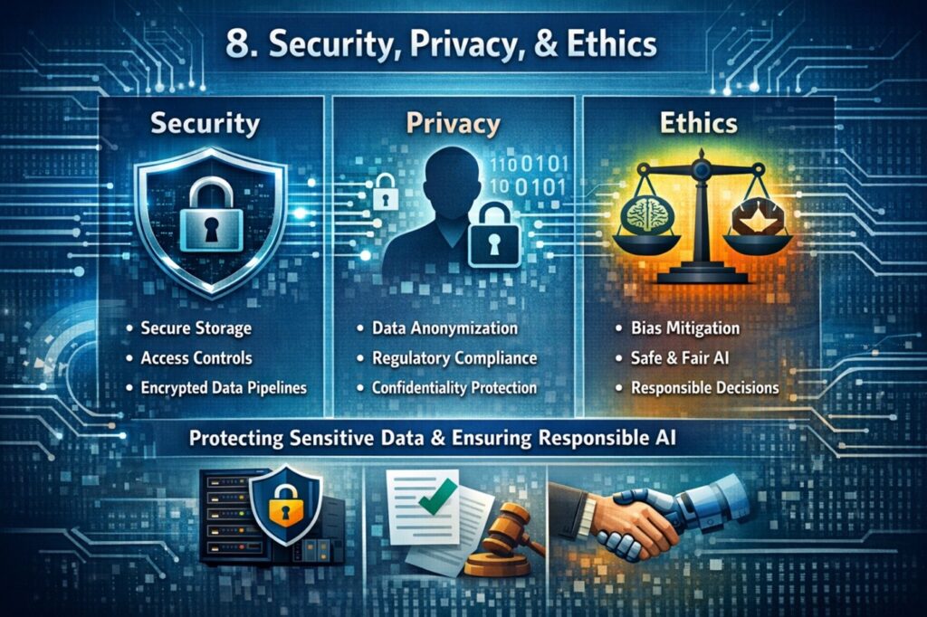 After evaluating computational resources and ROI, the next important factor is ensuring security, privacy, and ethical responsibility during AI model fine-tuning. AI systems often rely on sensitive data sources such as device telemetry, diagnostic logs, operational workflows, and proprietary engineering data. Protecting this information is essential for maintaining product integrity and preserving customer trust while deploying AI-driven systems.