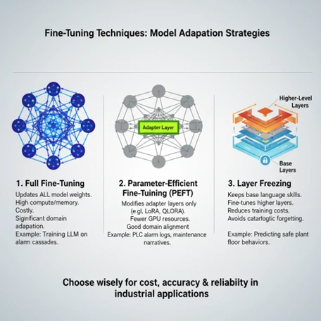 Once the correct base model has been selected, the next step is determining how to fine-tune the model from the PES perspective. The type of fine-tuning method selected will impact the model’s accuracy, cost of training, efficiency of deployment, and long-term reliability once the AI system is utilized within real products or industrial environments.