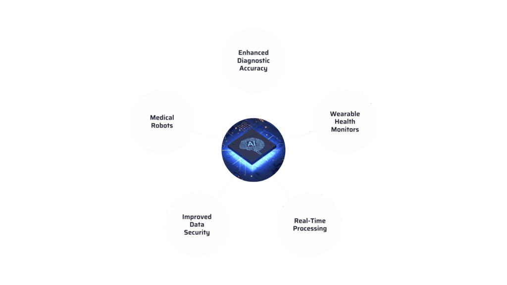 Embedded systems, consisting of hardware and software designed for a specific function, are the foundation for many medical devices. In the healthcare industry, embedded systems are critical for integrating AI into medical applications. These systems are incorporated into devices such as wearable health monitors, diagnostics equipment, and medical robots, allowing them to process and analyze data in real-time. The combination of embedded systems with AI allows medical equipment to conduct complicated tasks independently, resulting in more efficient and precise outcomes. These systems are specifically built to meet the needs of healthcare applications, assuring dependability, low power consumption, and real-time processing and providing updates, all are critical factors in the medical field for the patient’s monitoring.