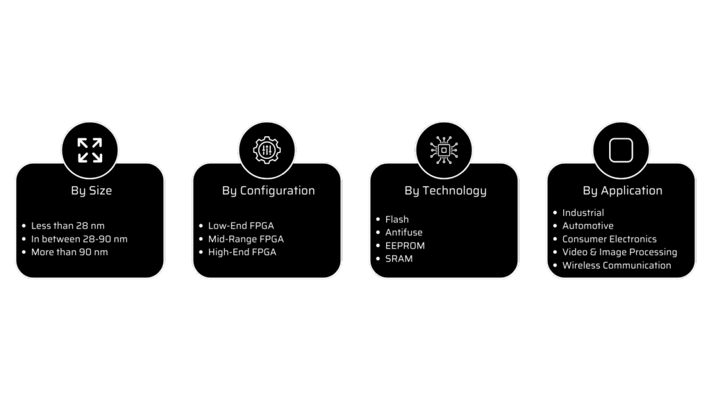 The FPGA market is highly contested due to economies of scale, the nature of product offerings, and the cost-volume metrics favouring firms with low fixed costs. According to the size, 28nm FPGA chips are expected to grow rapidly because they provide high-speed processing and enhanced efficiency. These features have aided its adoption in a variety of industries, including automobiles, high-performance computing, and communications. The consumer electronics sector appears to be promising for FPGA since rising spending power in developing countries contributes to increased market demand for new devices. FPGAs are being developed by market players for use in IoT devices, Natural Language Processing (NLP), based infotainment, multimedia systems, and various industrial smart solutions. Based on the application requirement, either low-end, mid-range or high-end FPGA configurations are selected.