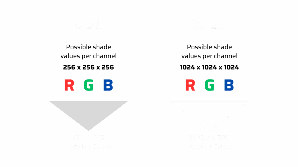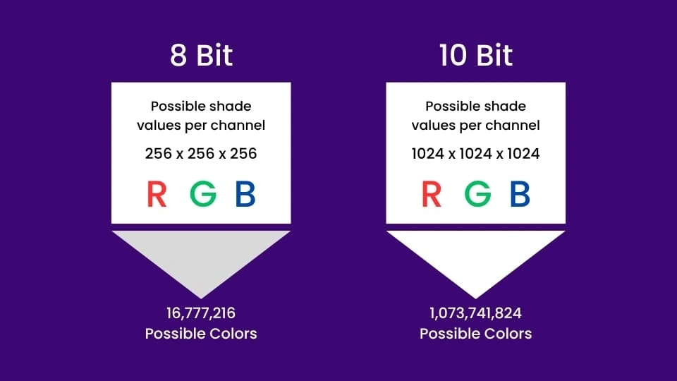| Color depth | Provides a 10-bit color depth per channel, allowing finer color gradations and smoother transitions between colors. | Offers a lower color depth, resulting in fewer color gradations and potential color banding. |