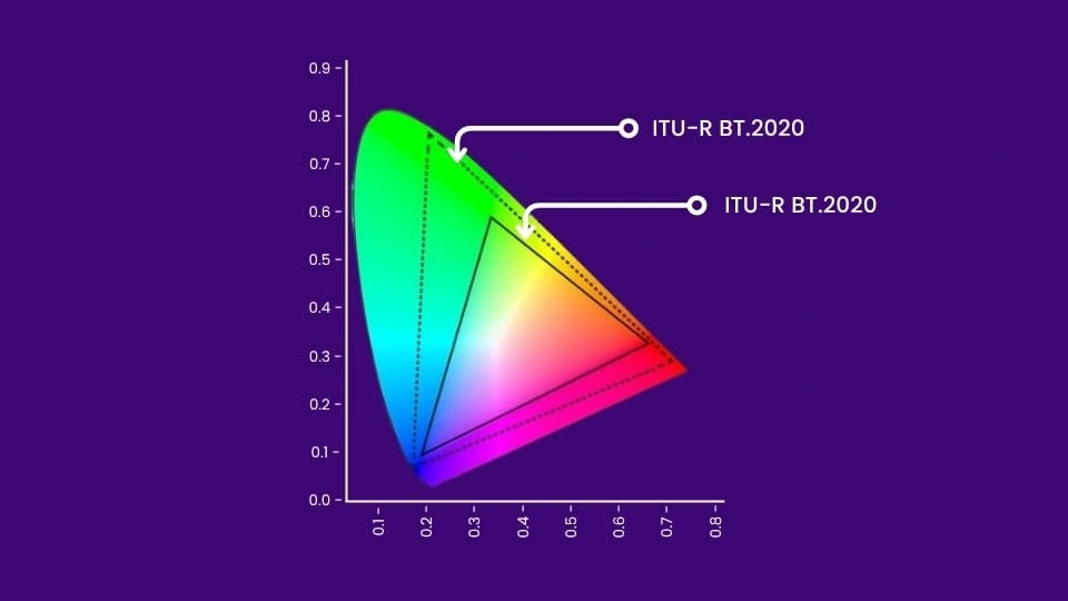 CIE Chromaticity Diagram representing Rec.709 vs Rev2020