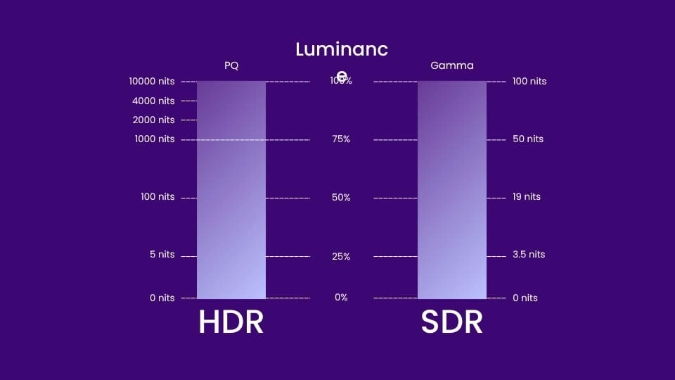 Luminance and brightness: Luminance plays a pivotal role in our perception of contrast and detail in image processing. Higher luminance levels result in objects appearing brighter and contribute to the creation of striking highlights and deep shadows in HDR content. Luminance, measured in units called “nits,” is a scientific measurement of brightness. In contrast, brightness, in the context of how we perceive it, is a subjective experience influenced by individual factors and environmental conditions. It is how we interpret the intensity of light emitted or reflected by an object. It can vary from person to person.